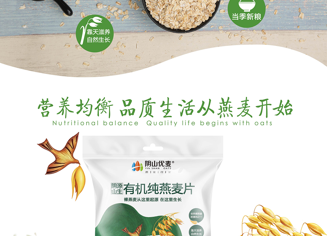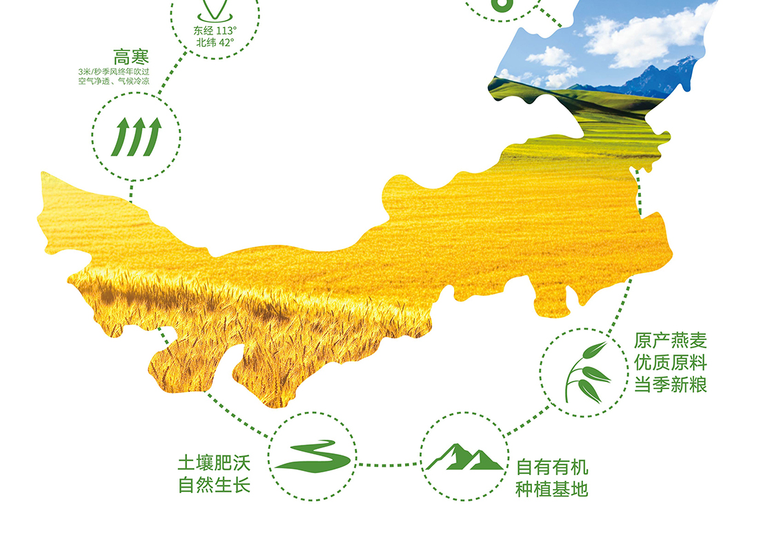 內蒙古,世界裸燕麥起源地之一;陰山源生燕麥在此初生滿足生長規(guī)律一切所需,高寒、高海拔、日照充足;遵循自然法則,靠天滋養(yǎng),自然生長;一粒陰山源生裸燕麥,一場無聲有機革命