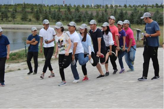 本次擴(kuò)展訓(xùn)練分別從德、智、體、美、勞五項趣味進(jìn)行了才藝大比拼。三組人員分別進(jìn)入各自的營地,將隊名、口號、隊歌寫在旗幟上規(guī)定時間內(nèi)展示給大家。令所有人都大跌眼鏡的是三組隊員的隊名如出一轍,完全一樣,他們都是—《戰(zhàn)狼隊》。隨后,戰(zhàn)狼三個隊展開了“肺活量大比拼”、“瞎子”背“瘸子”、“智能撲克傳遞”、“毛毛蟲速爬”、“燒烤比賽”等多個賽事。